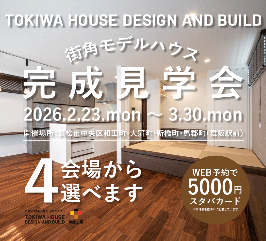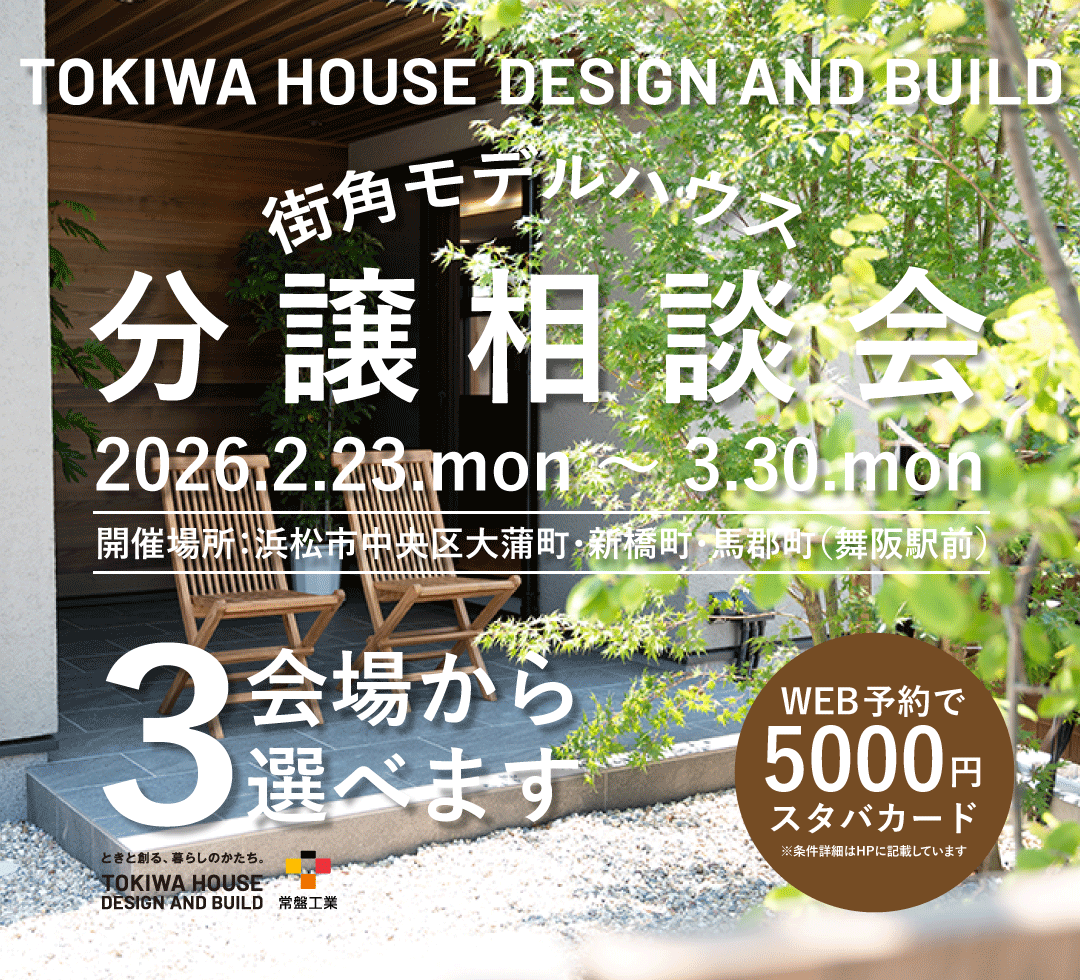 そして、自然エネルギーを最大限に活用して快適な空間を作る新発想のスマートハウス「TOKI:SMA[ときすま]」。TOKIWA HOUSE DESIGN AND BUILDでは、これら3つの住まいをご用意しています。