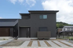 床材・面材をダーク系でそろえた家
