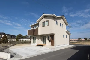 ナチュラルなインテリアとキッチン背面の「見せる収納」を採用したカフェスタイルの家です。 くすみカラーをクロスに採用してかわいらしくお洒落なインテリアとなっております。