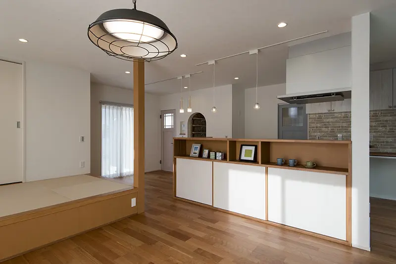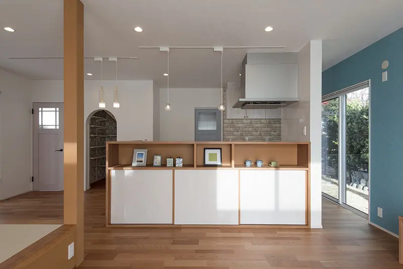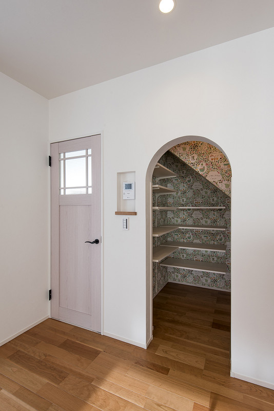 アール開口・アクセントクロスでかわいらしく仕上げた家