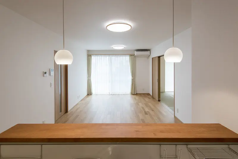 浜松市中央区木のぬくもりと、やわらかな光がつくるカフェのような空間。お気に入りの家具やグリーンが映える、シンプルでナチュラルなデザイン。