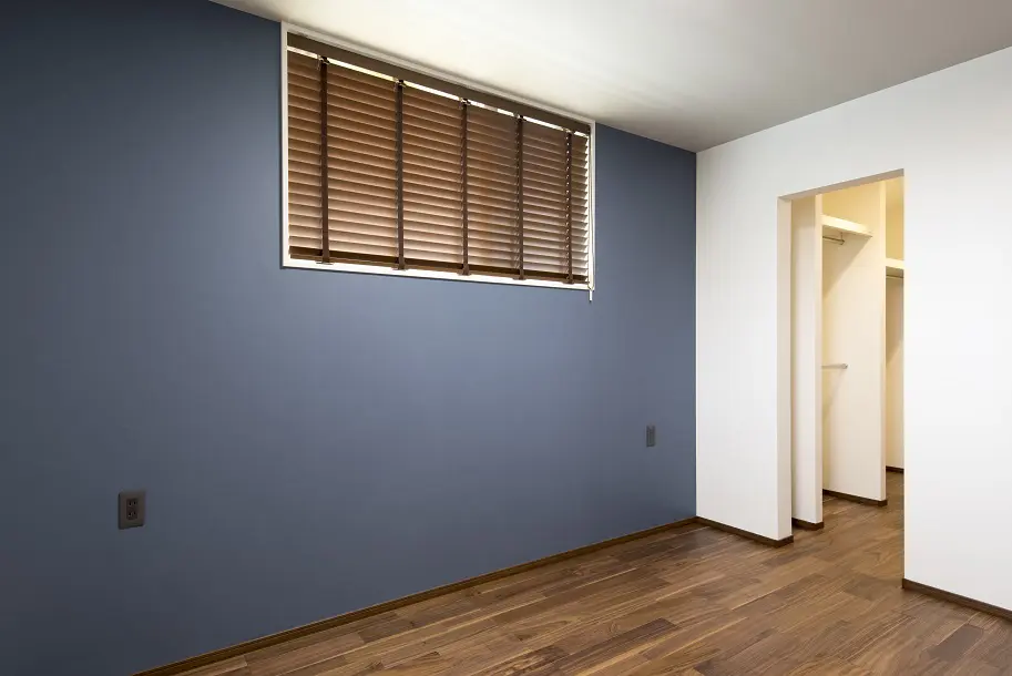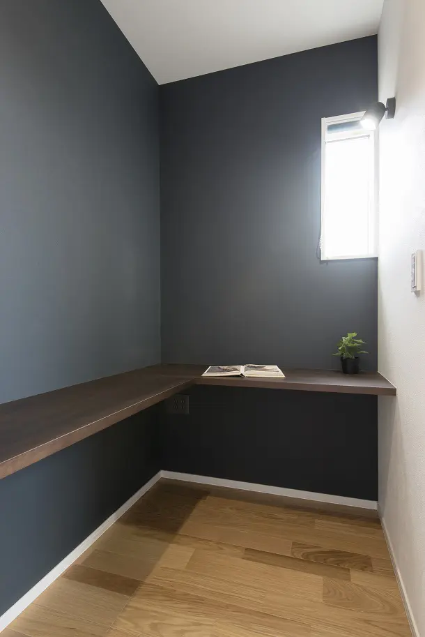 廊下の一角に設けられた書斎スペースは、アクセントクロスで落ち着いた空間に。