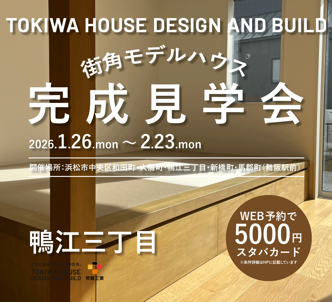 【5会場セレクト】浜松市内で完成見学会|見るだけOK!@和田・新橋・鴨江・舞阪・大蒲|WEB予約で5000円分スタバカードプレゼント